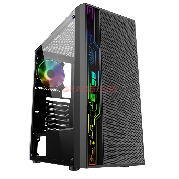 2E GAMING Computer case HEXAGON (G338) MidT,2xUSB2.0,1xUSB3.0, 1x120+3x120ARGB ,TG (side panel),without PSU,black