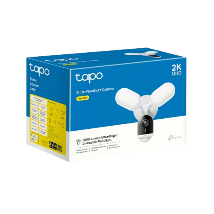 Tp-Link Tapo C720, Smart Floodlight Camera, 2K QHD Live 150° field View, microSD up to 512GB, Two-Way Audio