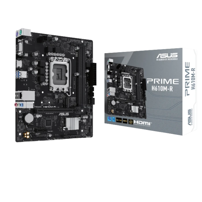ASUS PRIME H610M-R-SI, M-ATX motherboard, DDR5, M.2 slot, Realtek 1 Gb Ethernet, DisplayPort, HDMI™, VGA, USB 3.2
