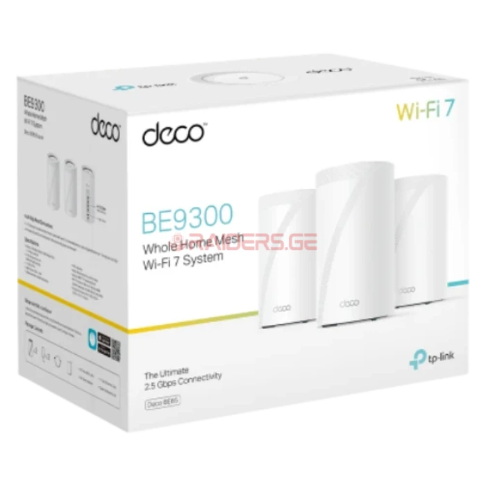 უსადენო როუტერი Deco BE65(1-pack), TP-LINK BE9300 Whole Home Mesh WiFi 7 System, 4× 2.5Gbps RJ45 (WAN/LAN Auto-Sensing)