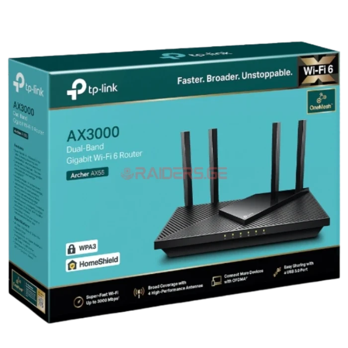 უსადენო როუტერი Archer AX55, TP-Link, AX3000 Wi-Fi 6 Gigabit Router Dual-Band
