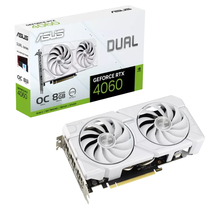 ASUS EVO DUAL-RTX4060-O8G-EVO-WHITE, 8GB GDDR6, PCI Express 4.0,128-bit, HDMI, DisplayPort 90YV0JCB-M0NA00